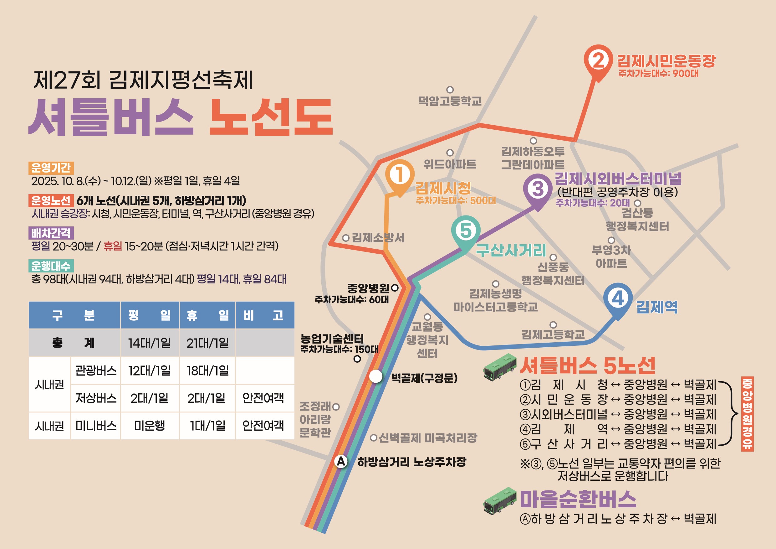 셔틀버스시간표 ㅣ 시내권 → 벽골제
