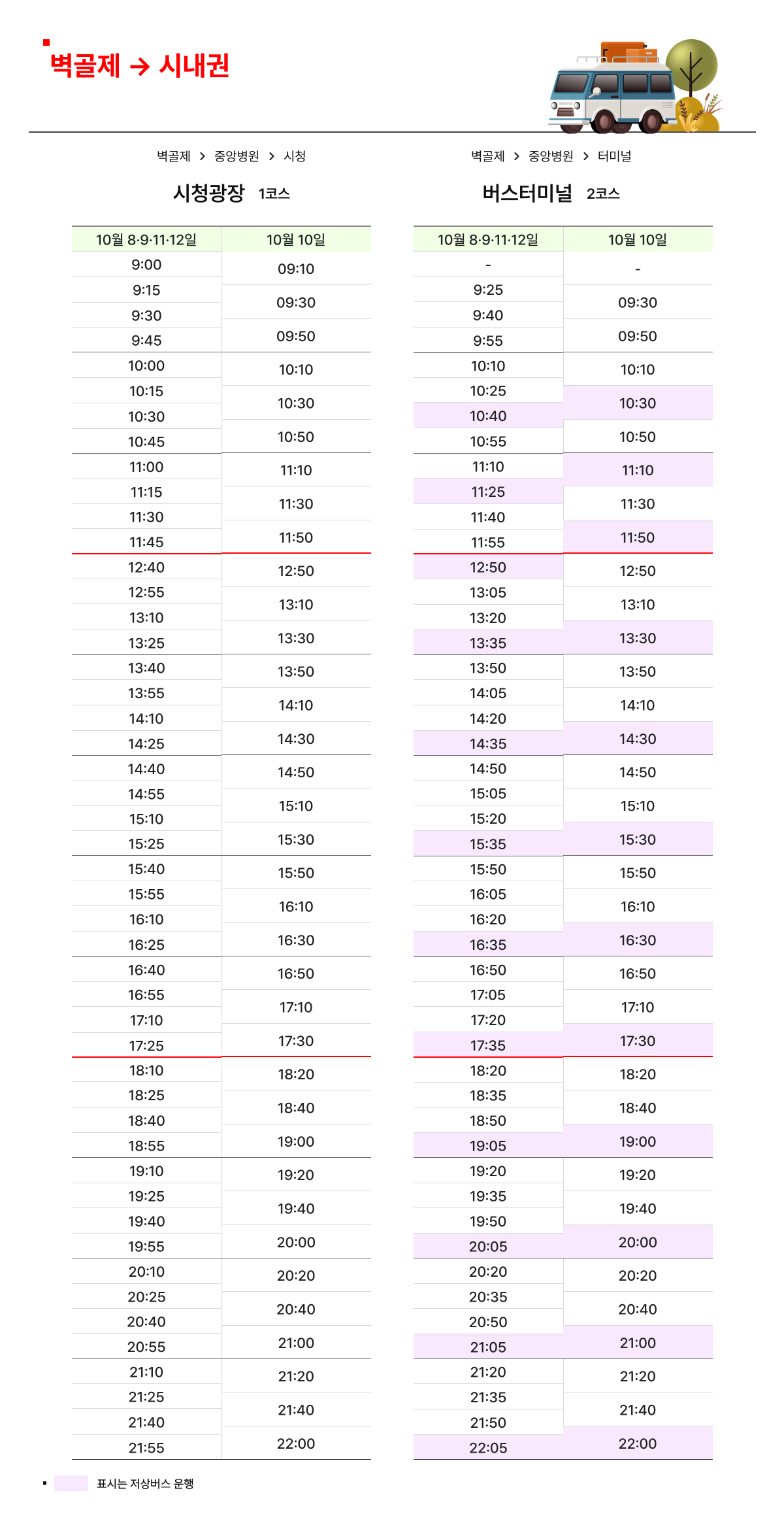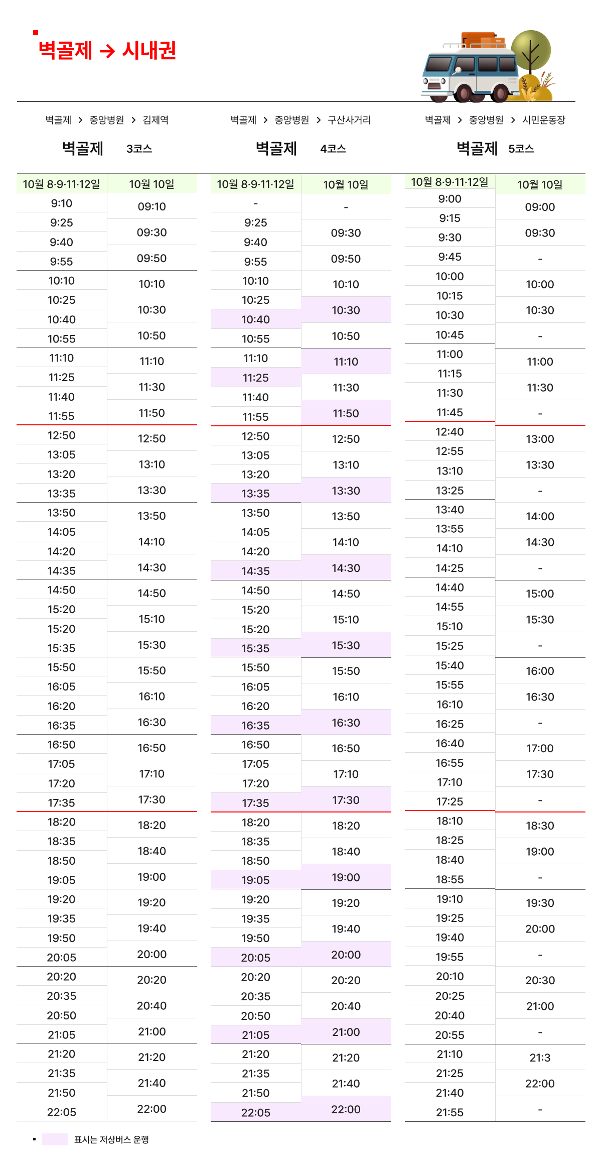 셔틀버스시간표 ㅣ 시내권 → 벽골제